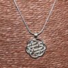 Shiny silver-toned Pewter pendant with a Celtic knot design.