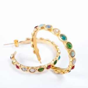 Eleganti orecchini a cerchio dorato, con perle di minerali naturali