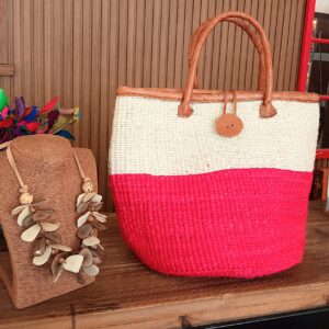 Mali: Borsa artigianale in fibra vegetale e Cuoio