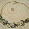 Originale collana sudafricana realizzata con cinque elementi a mezza spirale, in Ottone lucido e smaltato, con un punto centrale in Rame brillante.