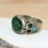 Espectacular anillo afgano en Plata y una bella pieza de vidrio de color verde brillante.
