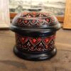 Preciosa caja nepalesa de madera laqueada en negro con decoración en forma de loto en rojo brillante a contraste.