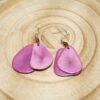Pendientes realizados artesanalmente con dos hojas solapadas de Nuez de Tagua (el nombre original del Marfil Vegetal)  en color rosa  brillante